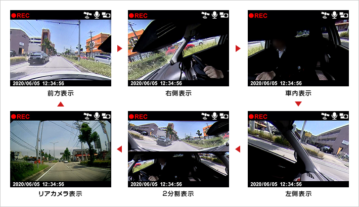 前後・左右・車内、さらに後方の映像をしっかり記録