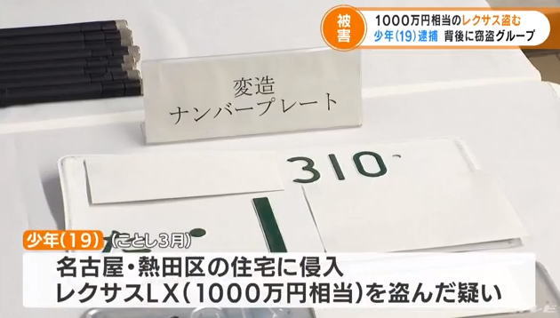 レクサスLX窃盗、容疑の19歳逮捕 愛知で被害続発、窃盗団の一員か