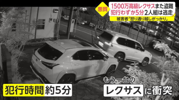 1500万円の高級レクサス盗難…わずか5分の犯行の一部始終 犯人は目出し帽にサングラスの2人組