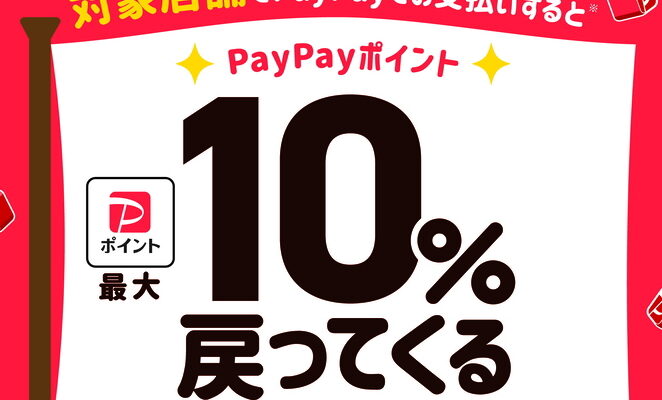 決済金額の最大10%PayPayポイントは、1ポイント=1円相当としてお支払いいただけます。